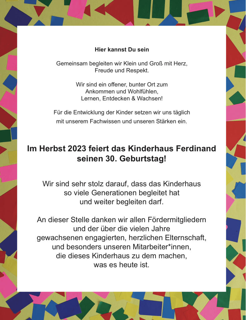 Das Kinderhaus feiert im Herbst 2023 seinen 30. Geburtstag 29/09/2023 von inajade Teilen mit: Klicke, um auf X zu teilen (Wird in neuem Fenster geöffnet) X Klick, um auf Facebook zu teilen (Wird in neuem Fenster geöffnet) Facebook Gefällt mir Wird geladen … Ähnliche Beiträge